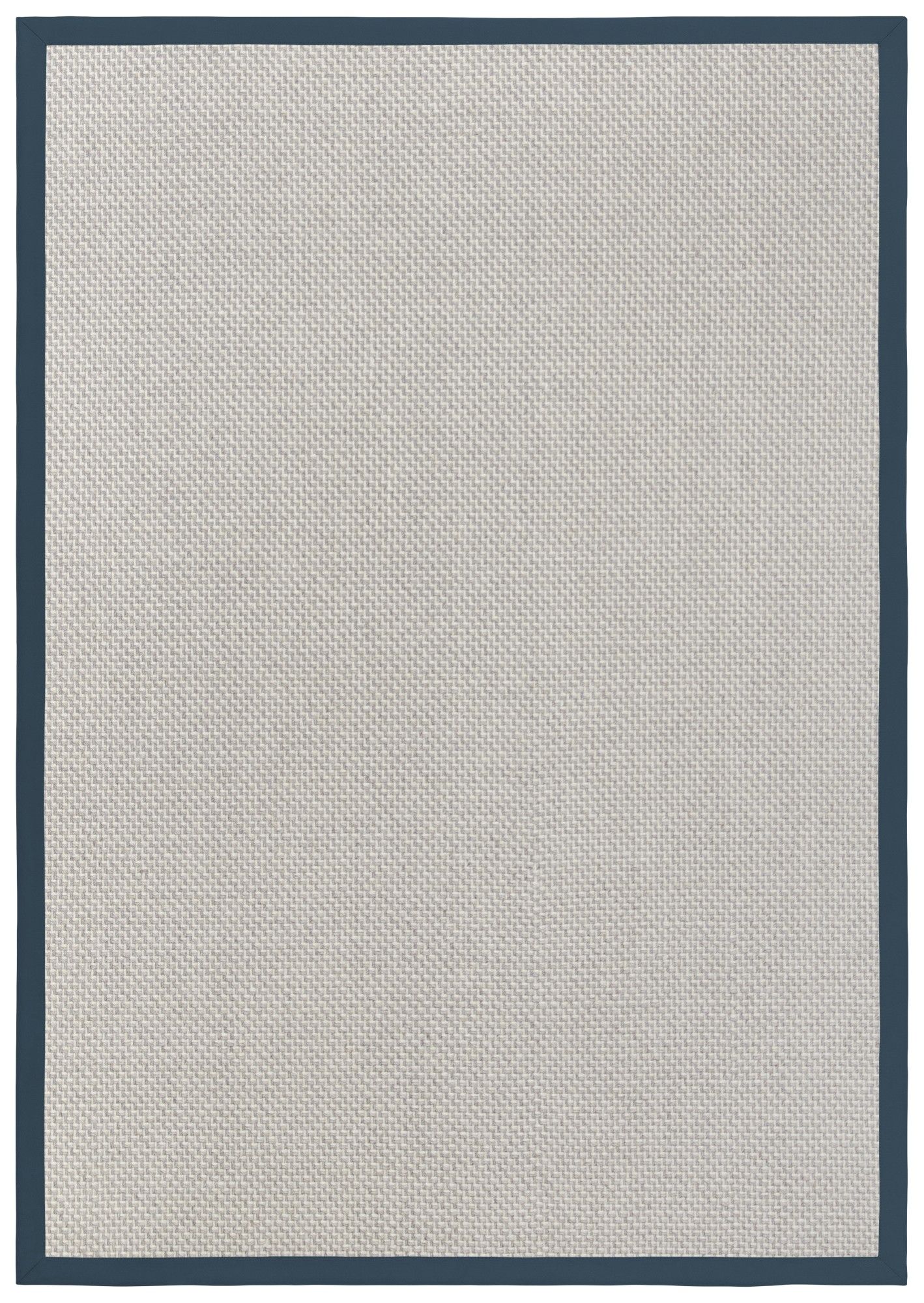 - Wollteppich Luna hellgrau Polyesterbordüre blau